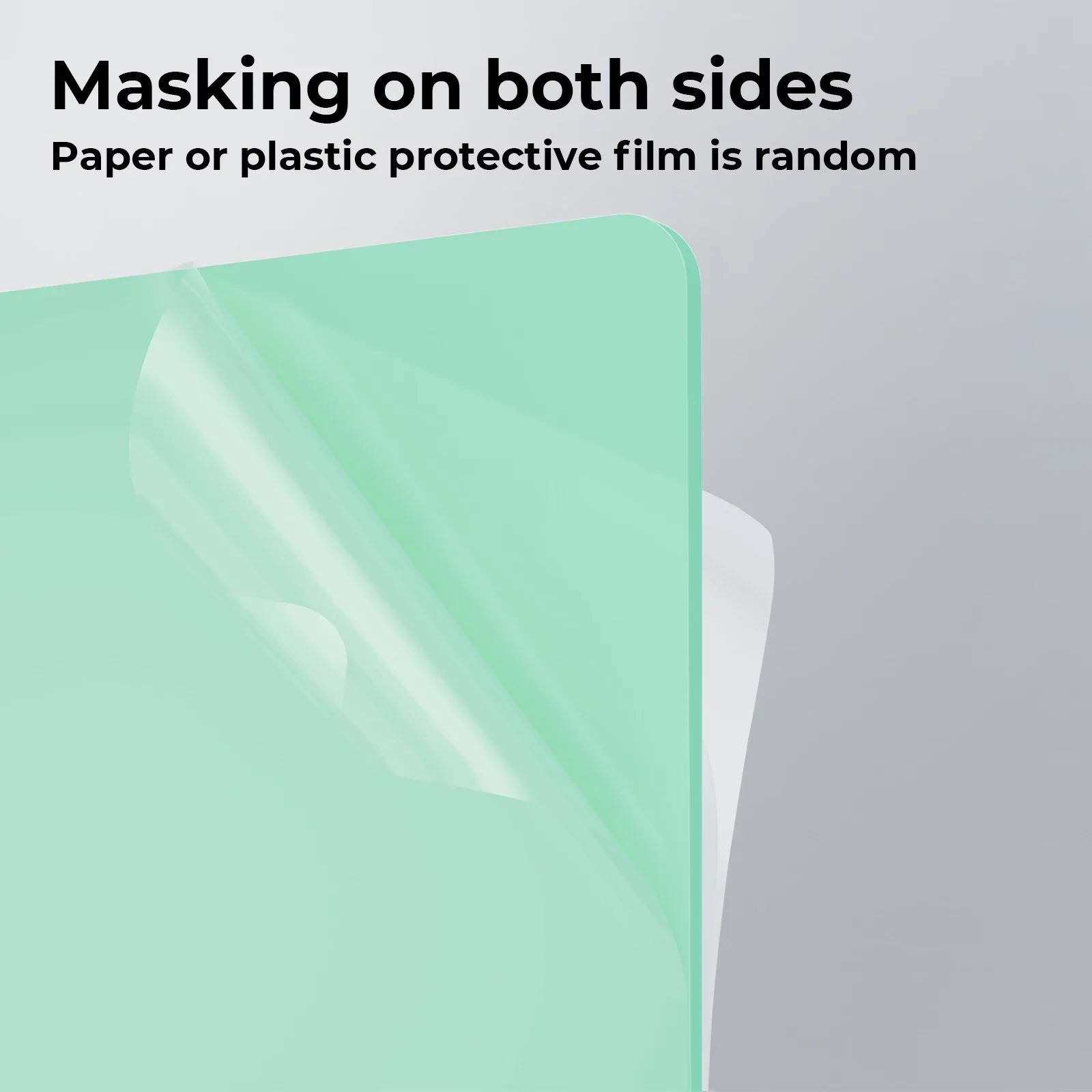 Please ensure to remove the protective film before using the acrylic sheet. Operate it in a well-ventilated area and wear a protective mask for safety. It's advisable to use it with the Air Assist Set. Allow for a variance of ± 1/2 inch for length and width, and ±1/12 inch for thickness.