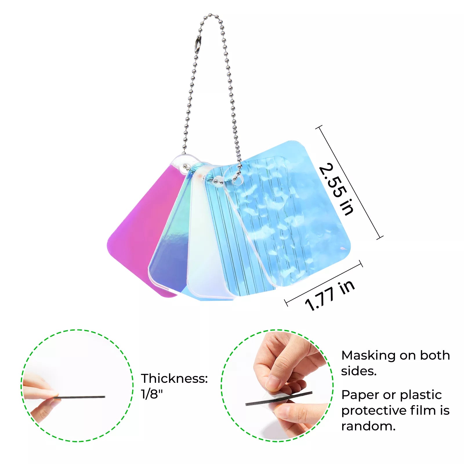 The iridescent acrylic sample set has a rigid structure. It exhibits strong resistance to dirt, requiring only a wipe with a damp cloth or water to maintain cleanliness effortlessly. Each acrylic sheet comes with double-sided protective films to prevent scratching while transporting.Casted Acrylic: Ideal for laser engraving and high-quality cutting with smoother edges and clearer engraved designs.