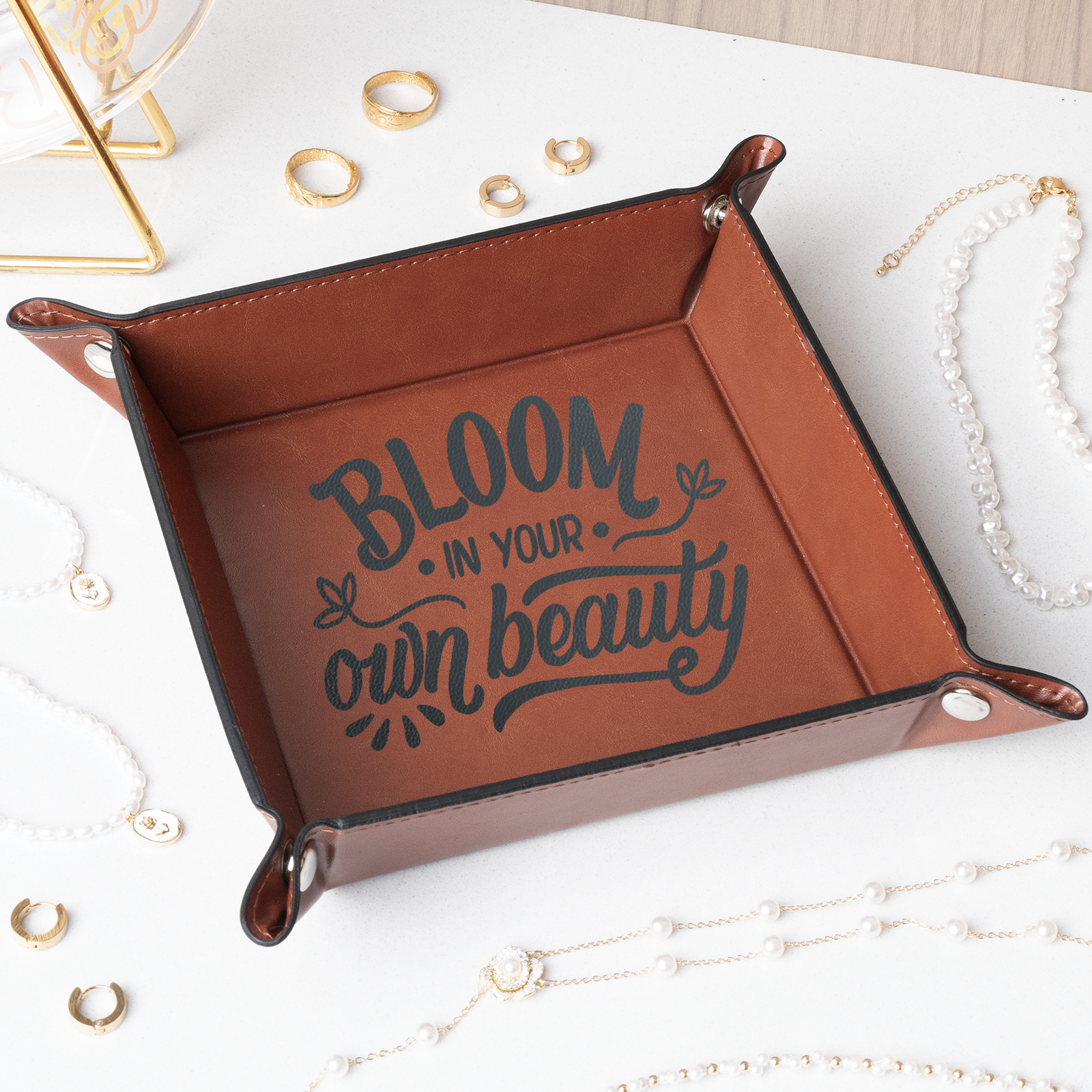 - The laserable PU leather tray is a decorative tray and a great helper for men to store keys, coins, phones, watches, wallets, coins, or other items. Whether it's in your living room, bedroom, bathroom, or office, it's a great choice.