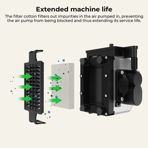 The filter cotton filters out impurities in the air pump, preventing the air pump from being blocked and thus extending its service life.