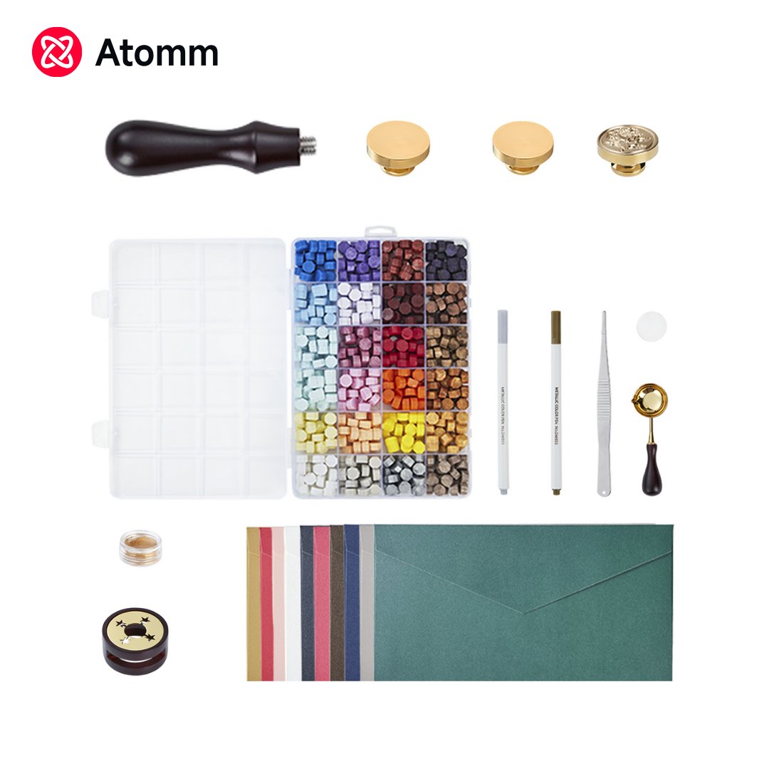 - The wax seal stamp DIY set includes 24 colors of wax sealing beads, 1 pcs wax sealing warmer, 1 pcs wax sealing spoon, 1 pcs Wax Stamp Handle, 1 pcs tweezer, 10 pcs tea lights candles, 2 pcs metal pens, 10 pcs envelopes, 2 pcs gold powders, and 3 pcs wax seal stamp heads. One brass stamp head with its own rose pattern and two blank brass stamp heads are available for engraving with the xTool F1 Ultra. Click here for machining design documents and assembly instructions.