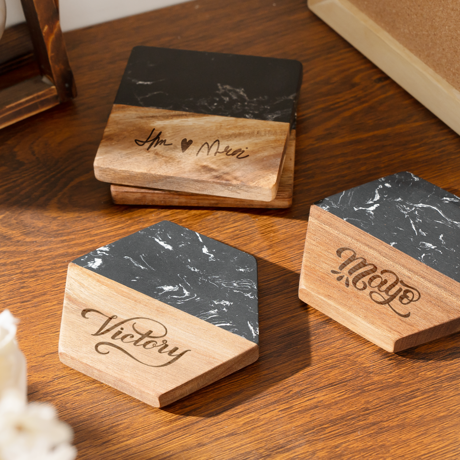 - Note: As wood and marble are natural materials, slight variations in grain and color may occur, adding to the unique charm of each coaster.