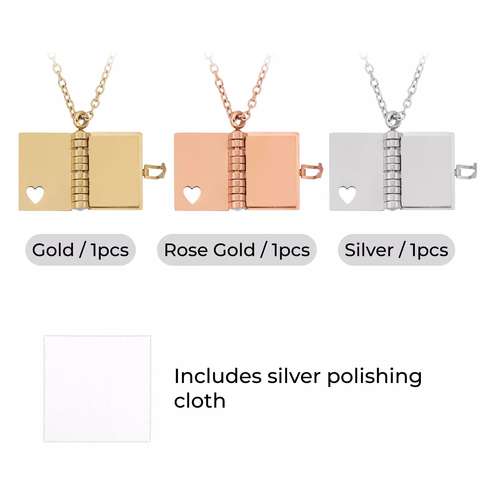 - What's Included3 x Stainless Steel Book Locket Necklace