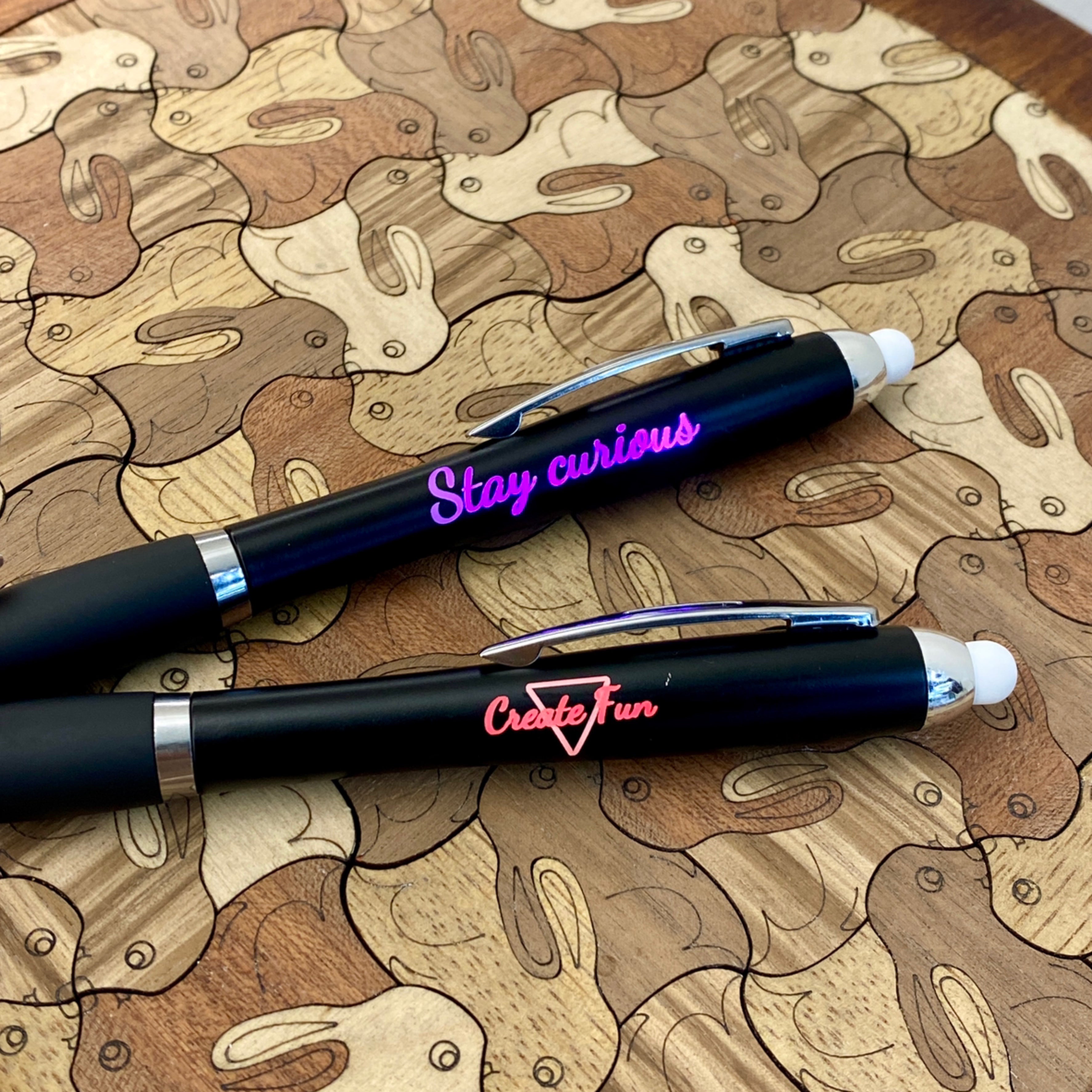 - The stylus ballpoint pen features a multicolored LED light that is perfectly adapted to the xTool machine for laser engraving. Simply carve patterns or text into the body of the pen to get a cool pattern that glows. A button on the end of the pen controls the light. For optimal performance and longevity, we recommend turning off the light when the pen is not in use.