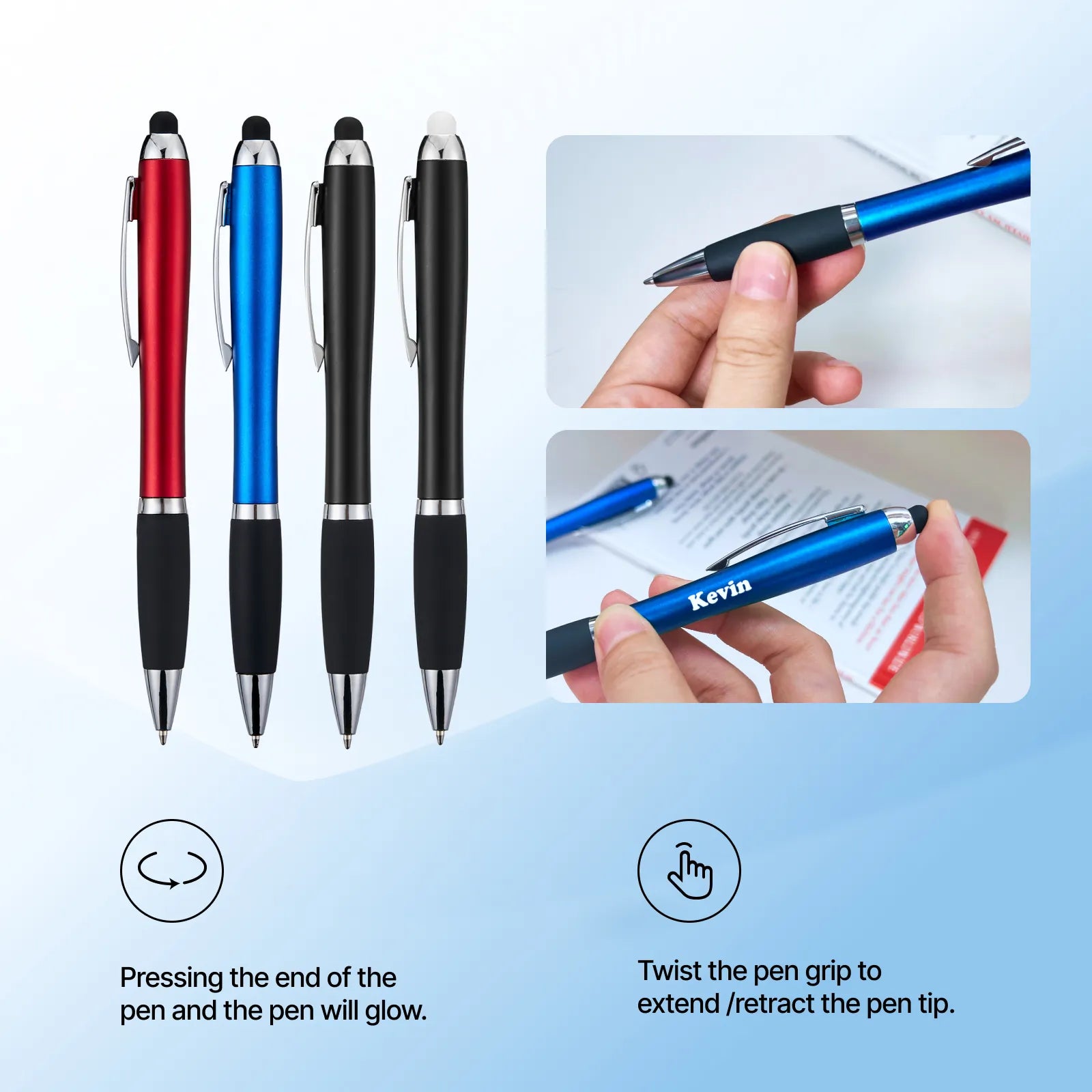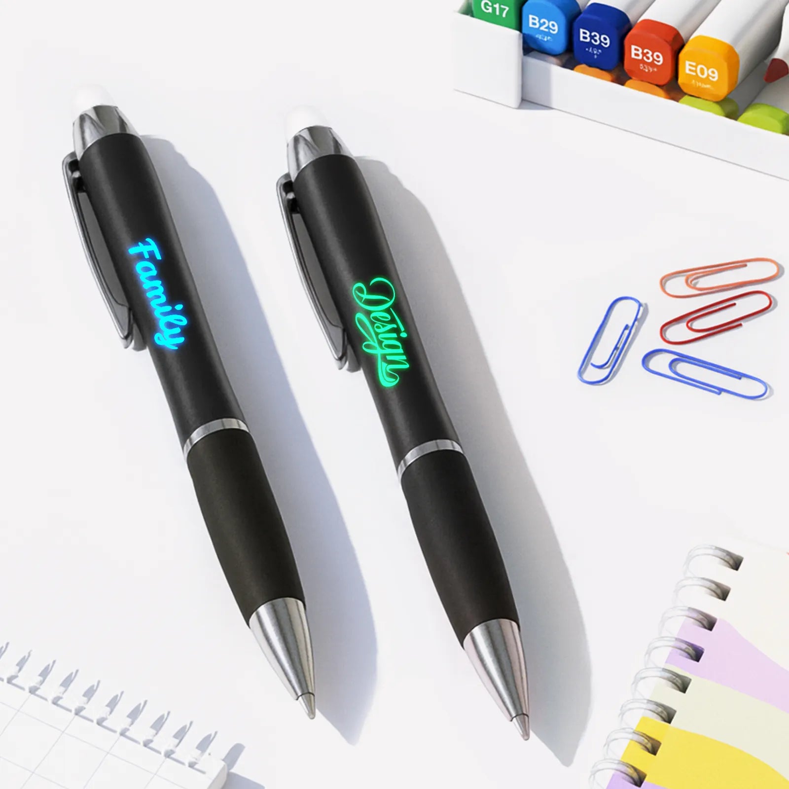 - What's Included10 x Black Stylus Ballpoint Pens With Multicolored LED Light