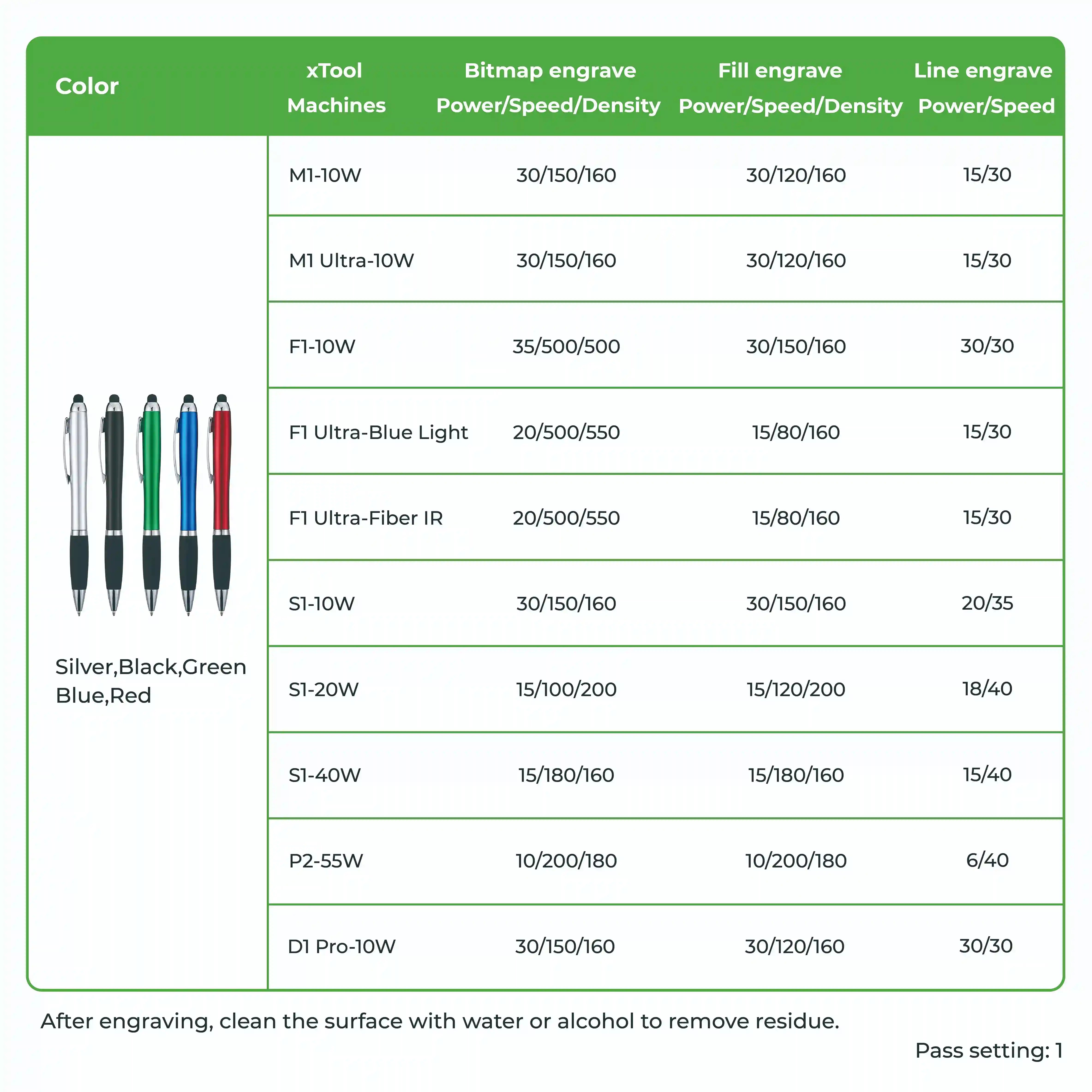 - The stylus ballpoint pen features an LED light that is perfectly adapted to the xTool machine for laser engraving. Simply carve patterns or text into the body of the pen to get a cool pattern that glows. A button on the end of the pen controls the light. For optimal performance and longevity, we recommend turning off the light when the pen is not in use.