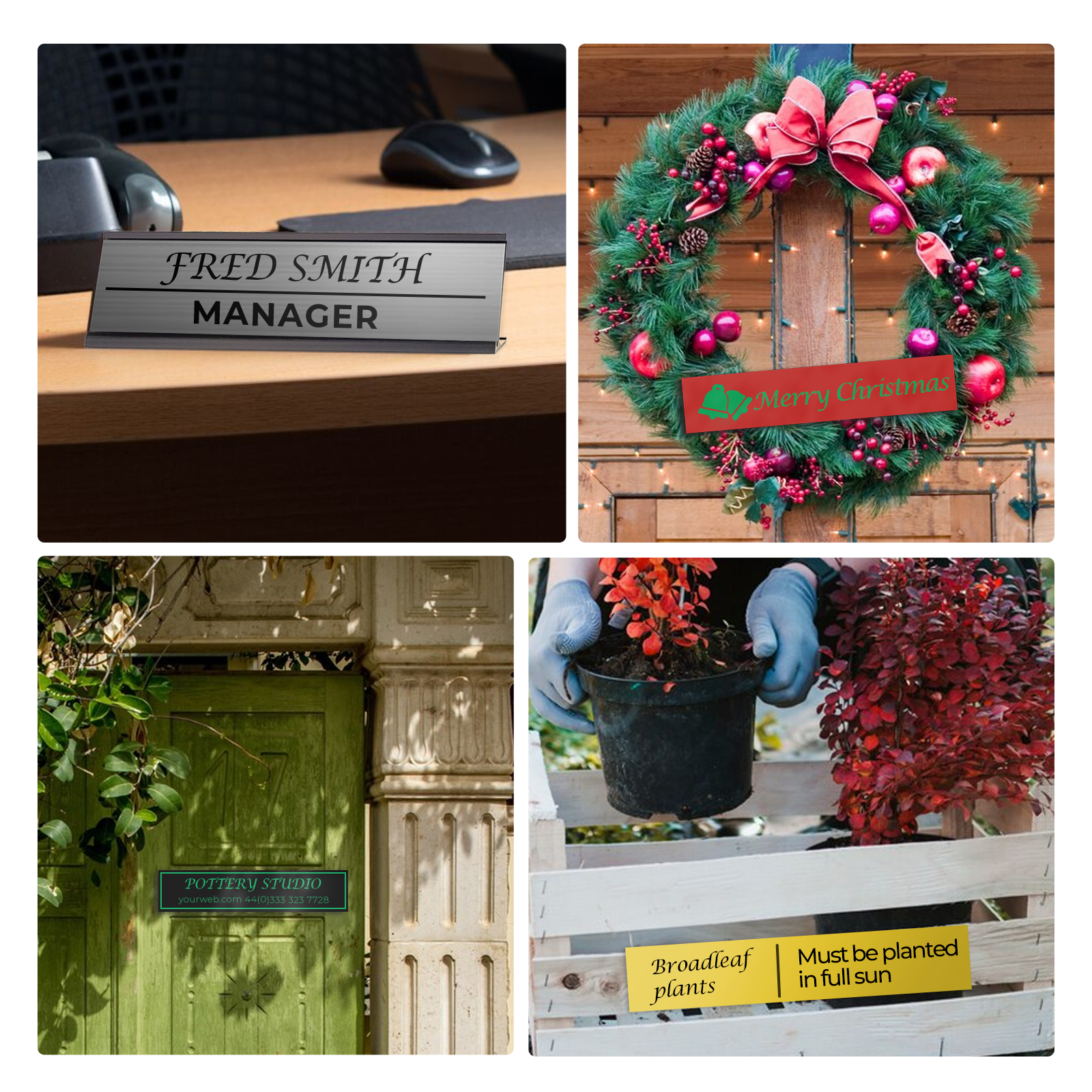 - High quality: Laser engraving two-tone plastic nameplate trial kit is a cost-effective laser material. The engraving effect is clear and black. When paired with a black iron nameplate holder, it looks gorgeous when displayed.