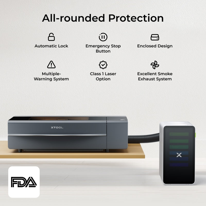 The xTool P2S comes in Class 1 machine with Class 1 designed for high safety environments.