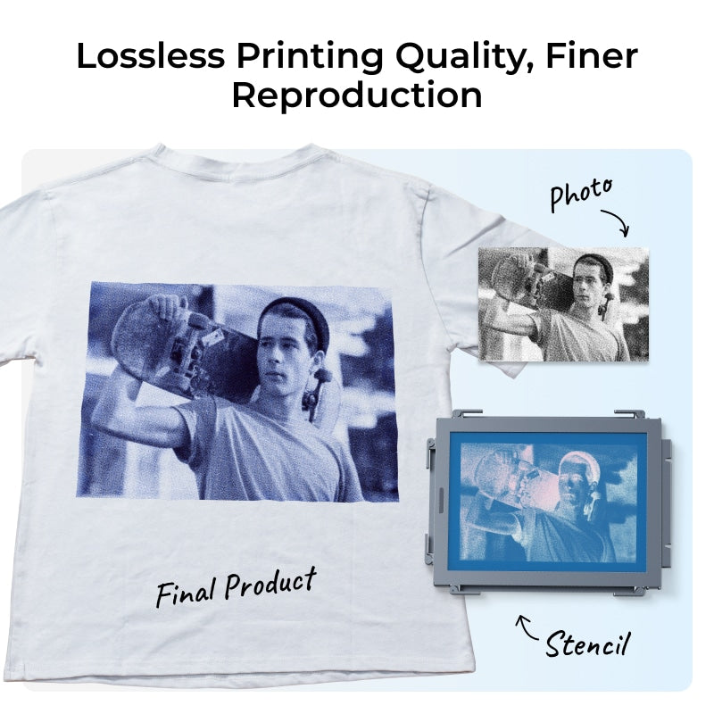 The traditional stencil-making process with exposure and high-pressure washing may lead to graphic distortion, especially for unseasoned beginners, resulting in loss of design intricacies. xTool's solution employs lasers to craft the screen directly, minimizing inconsistency.