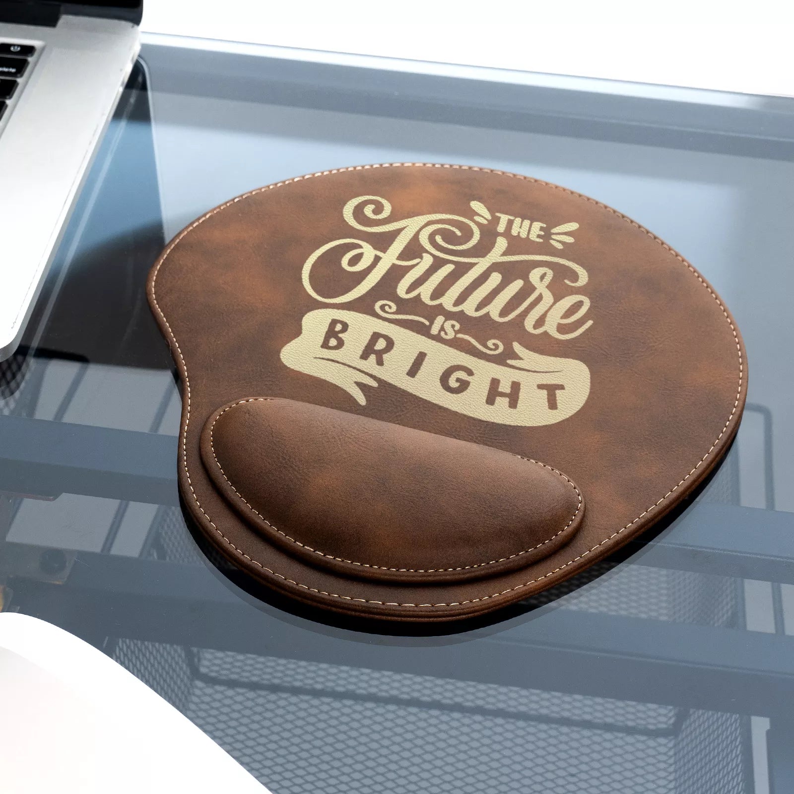 - What's Included1 x Dark Brown to Gold Laserable PU Mouse Pad with Wrist Support