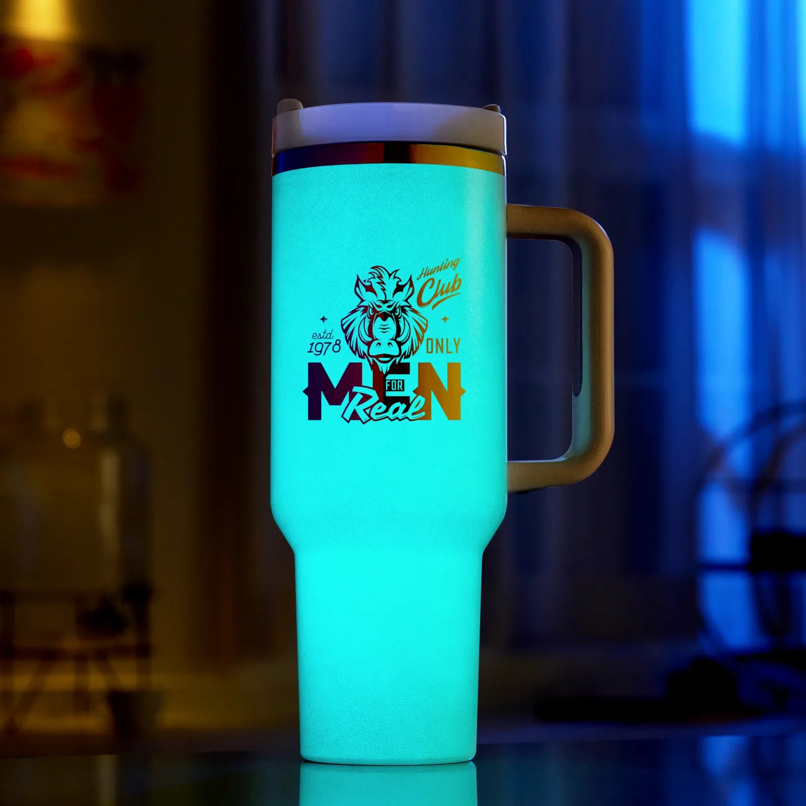 - This tumbler is coated with a unique glow-in-the-dark coating, which needs to absorb UV rays (exposed to sunlight) to have a glow-in-the-dark effect. It gives off a dreamy blue-green luminescence in the dark, creating a charming atmosphere. Perfect for nighttime use, and the cool color is perfect for parties!