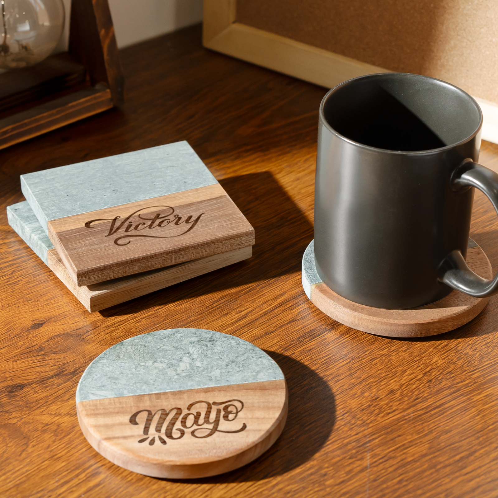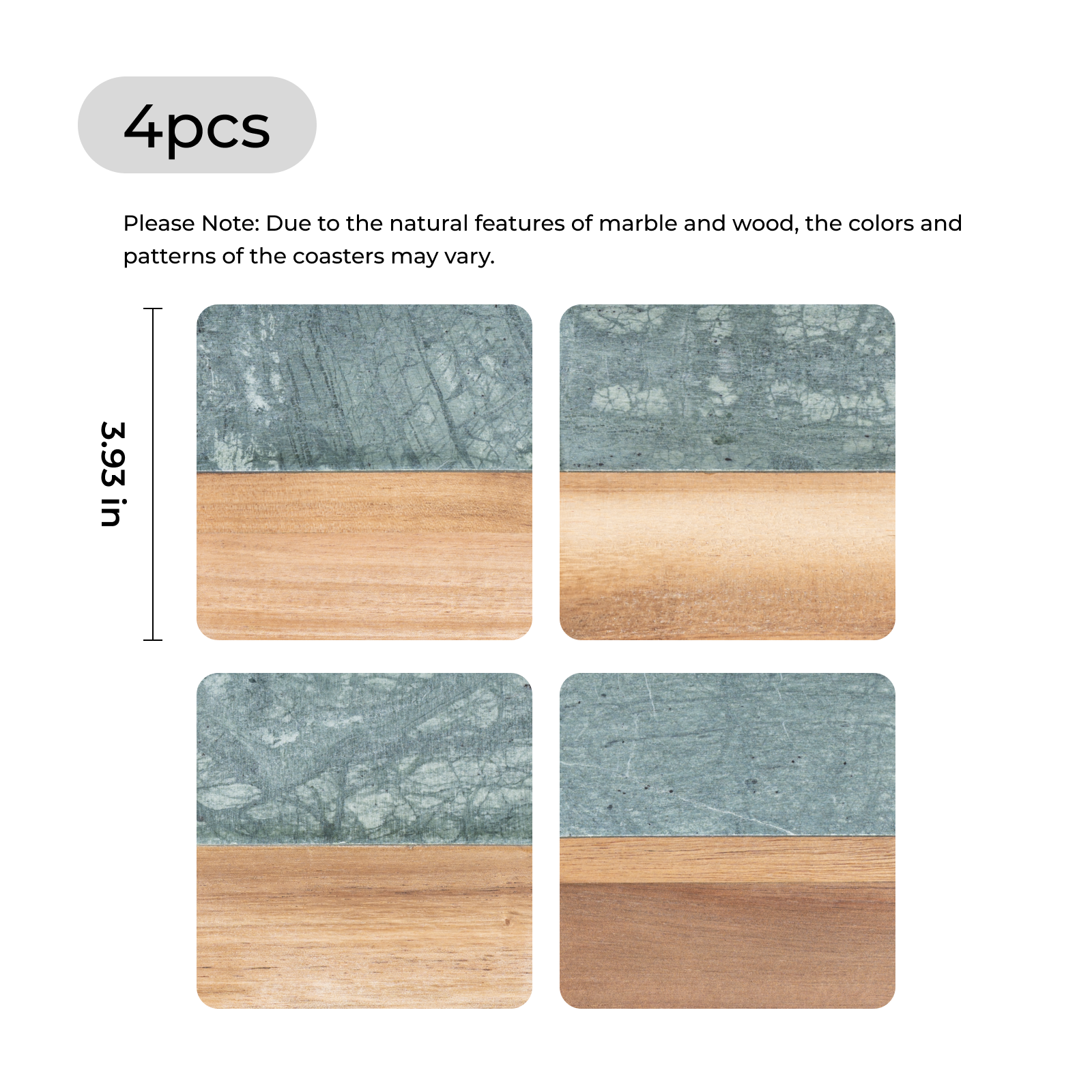 - Note: As wood and marble are natural materials, slight variations in grain and color may occur, adding to the unique charm of each coaster.