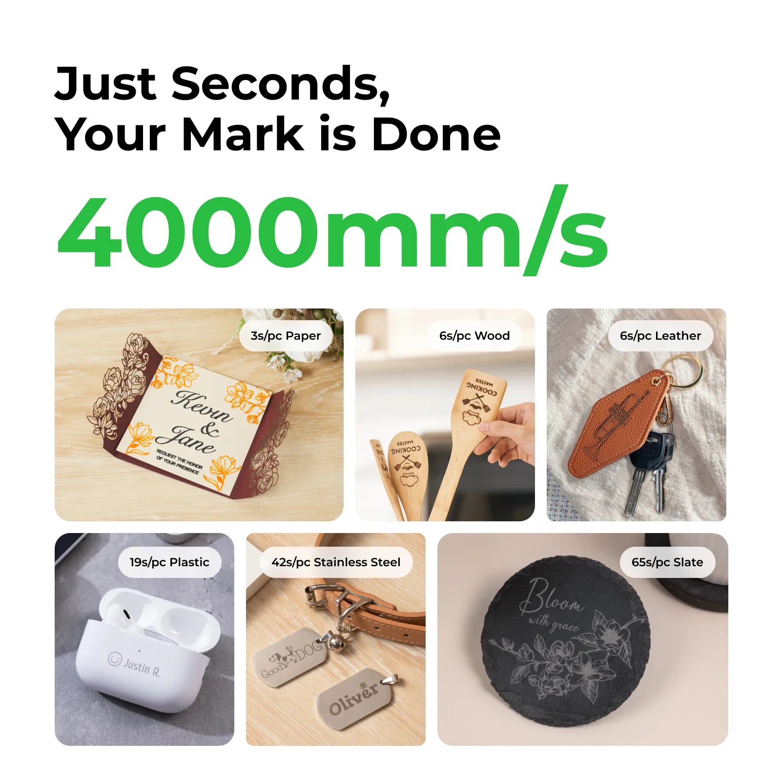 Engraving Speed: The max engraving speed of xTool F1 Lite and F1 is 4000mm/s, superfast among laser machines.