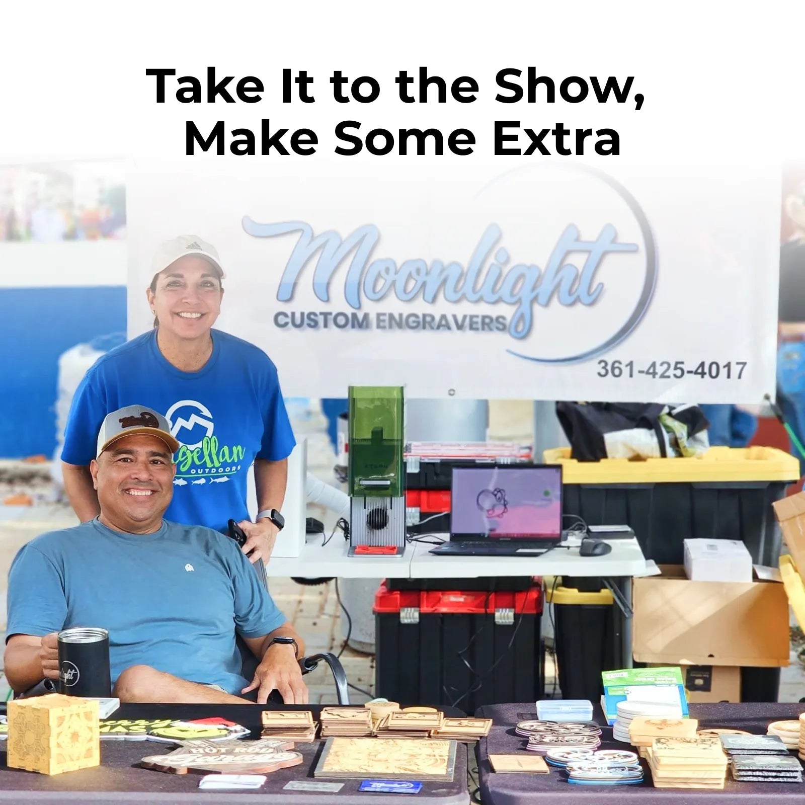 Designed with craft vendors in mind, this diode/IR Galvo laser engraver is super portable and can easily customize jewelry or various ornaments. Its compact size also makes it ideal for smaller workspaces.